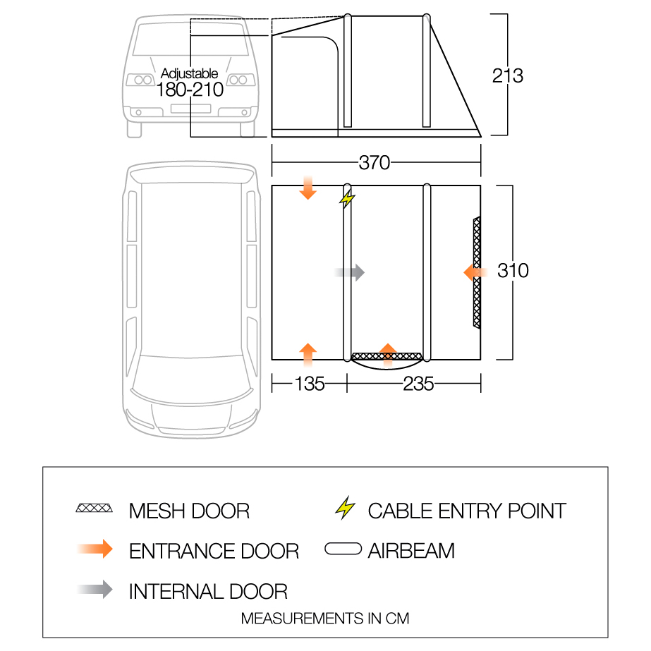 - 370 x 310 x 213 cm (long. x anch. x alt.)