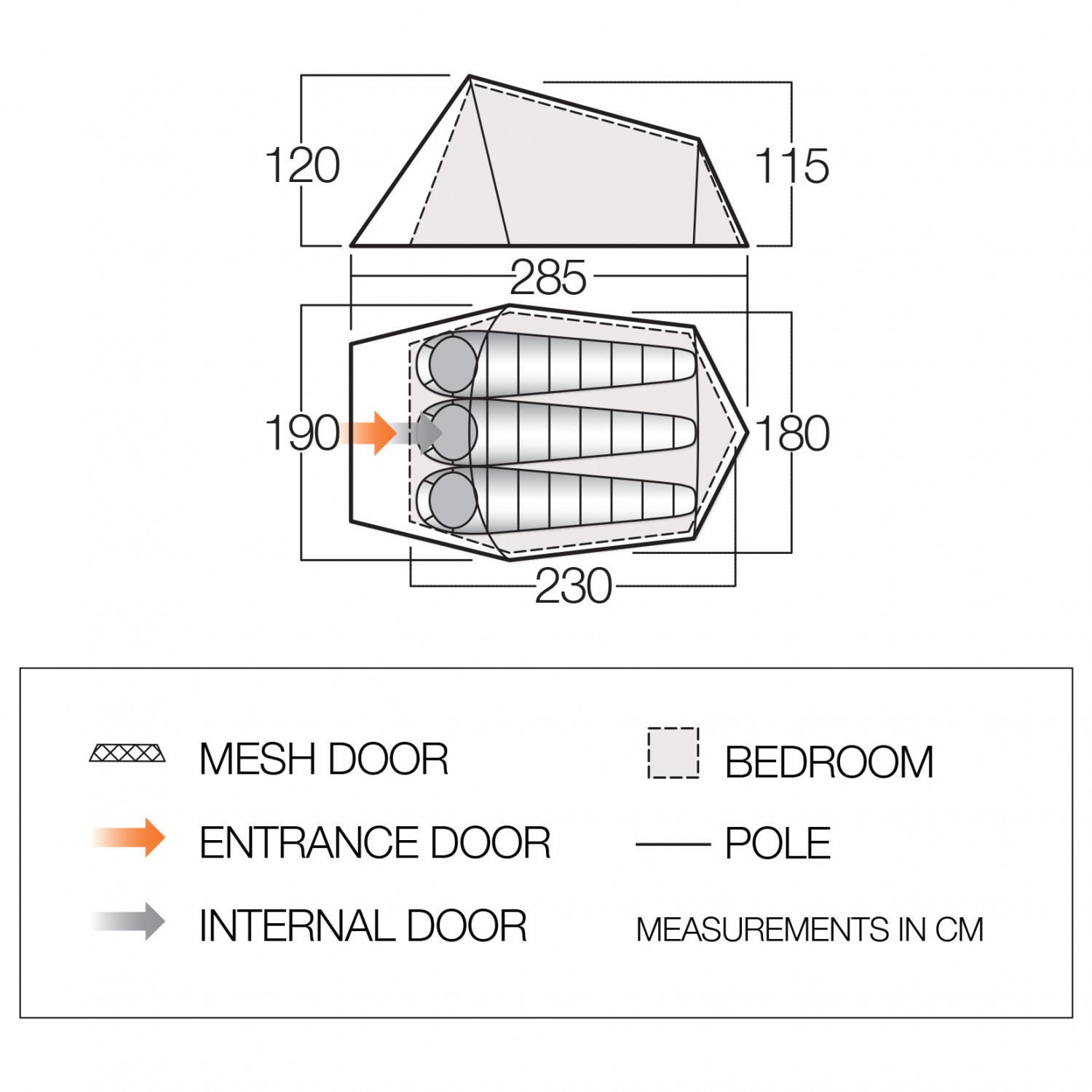 - 230 x 180 x 115 cm (long. x anch. x alt.)