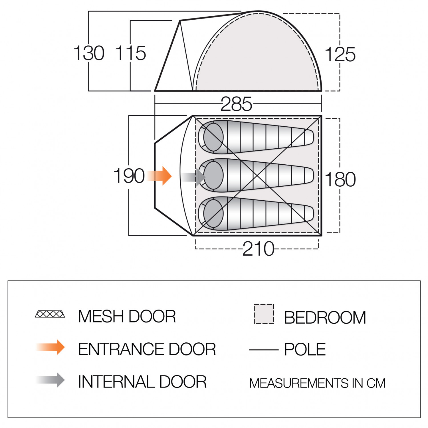 - 285 x 190 x 130 cm (long. x anch. x alt.)