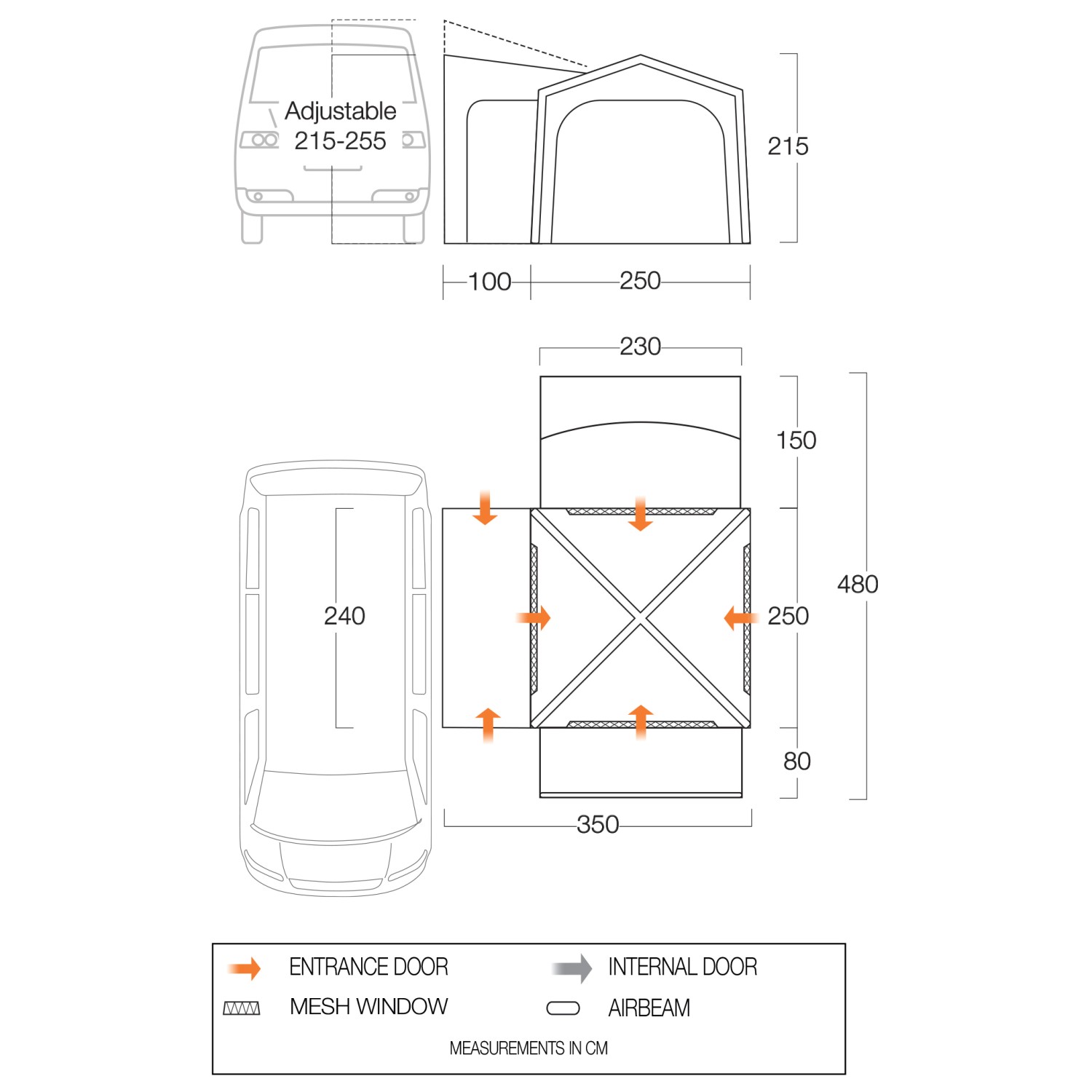 - long. 480 x anch. 350 x alt. 215 cm