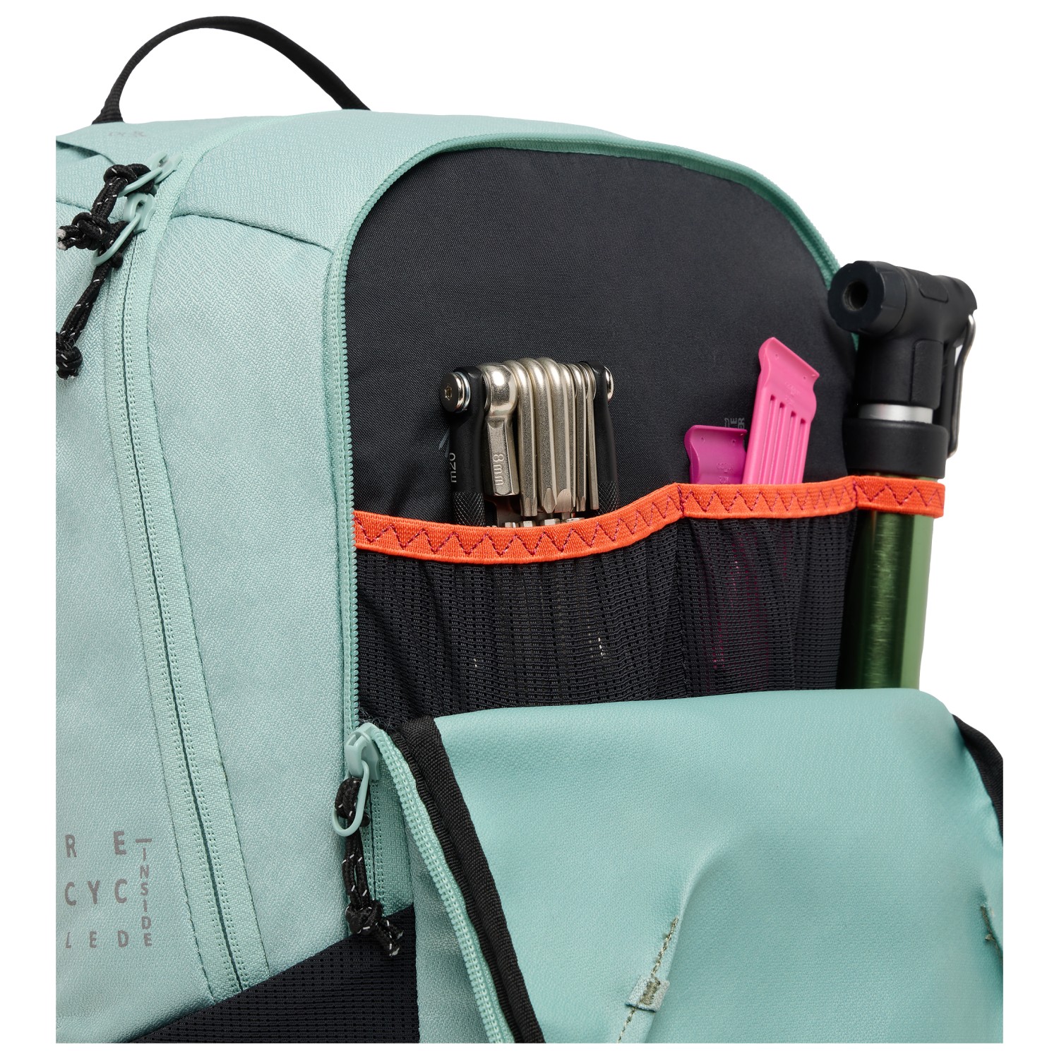 - 2 bolsillos laterales, soporte para casco, Compartimento organizador interior, clip para llaves, bolsillo interior con cremallera, soporte para luz trasera