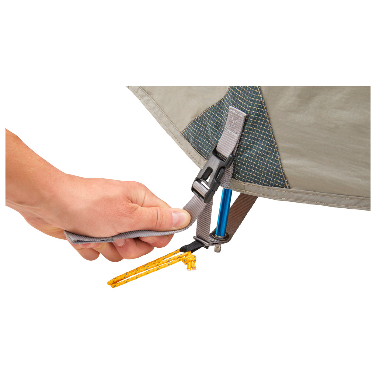 - tienda de campaña; cuerdas tensoras; piquetas; funda