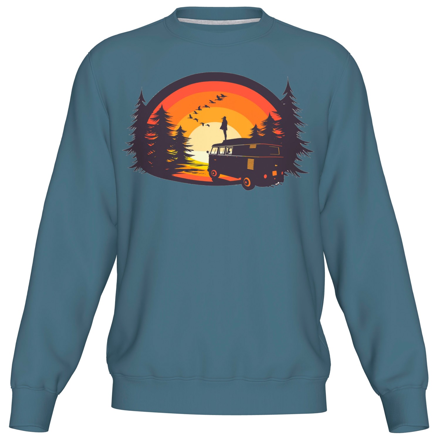 - estampado frontal, puños de canalé, cuello redondo
